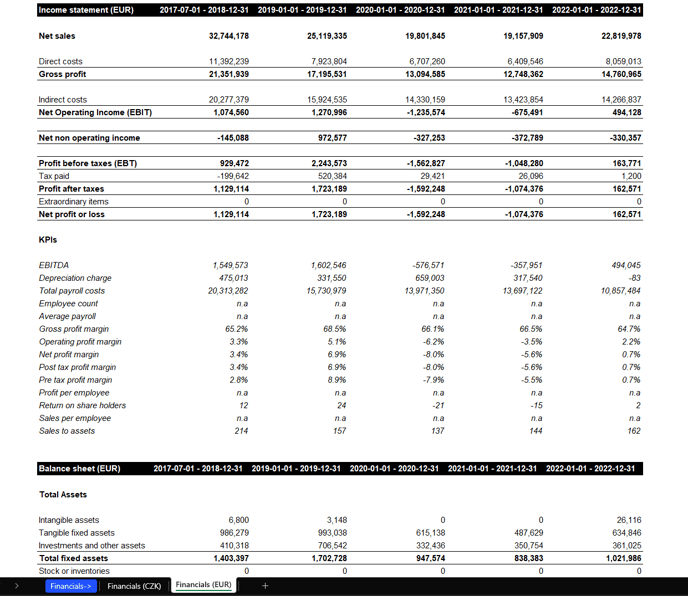 Each export of detailed financial data for a company counts as 1 detailed historical financial export credit, regardless of the time period included in the file.